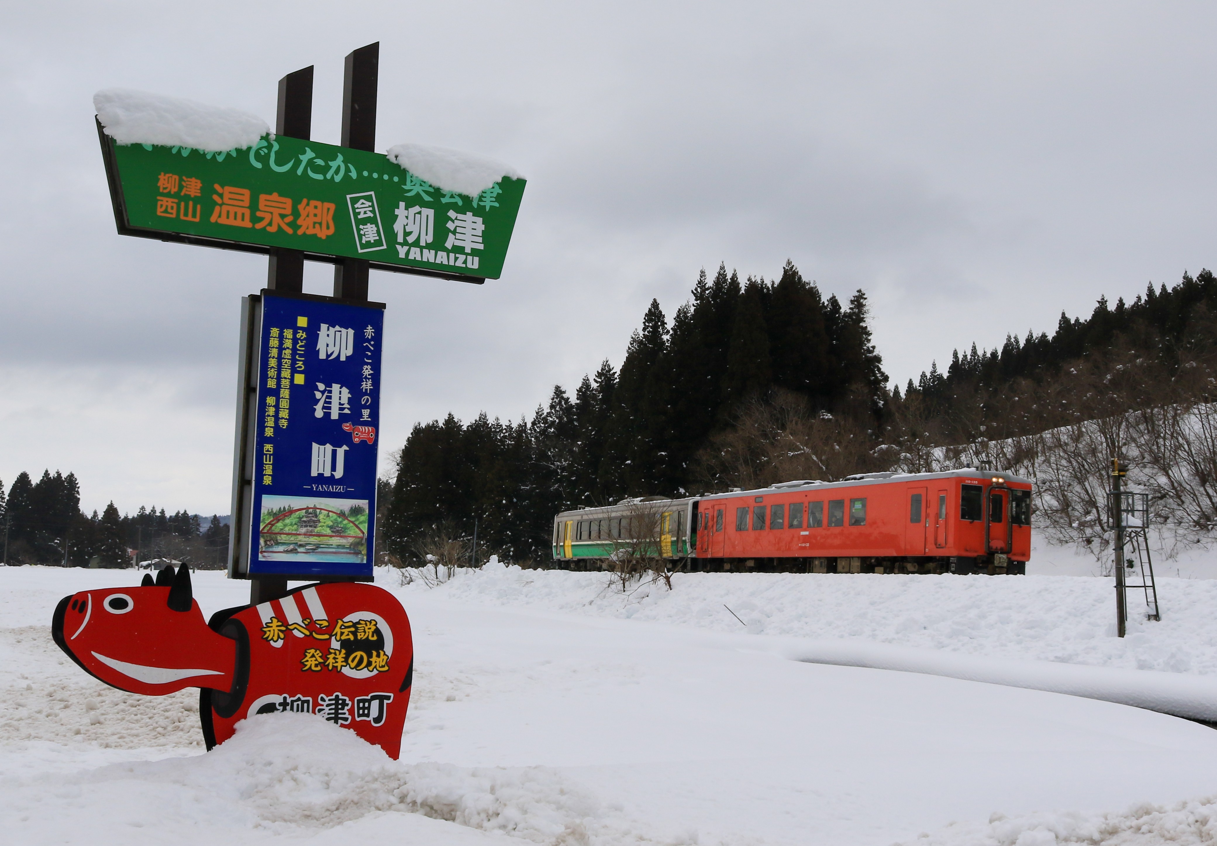 作品名「ポストの上に赤べこ見つけた!」